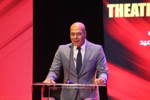 واختتم: تحية وتقدير لكل فنان مسرحي حافظ على هوية بلاده، وأخص بالشكر الفنانة الدكتورة إيناس عبد الدايم الداعم الرئيسي للمسرح والداعم الدائم للمهرجان القومى للمسرح وإصرارها على إقامة المهرجان في ظل كل الظروف الصعبة التي يمر بها العالم من جائحة كورونا إلى الأزمات الإقتصادية العالمية فتحية تقدير وإعتزار إلى معالى الوزيرة وليظل المسرح معلما ومرشداً وداعماً لكل جمال ومحبة وأمل.